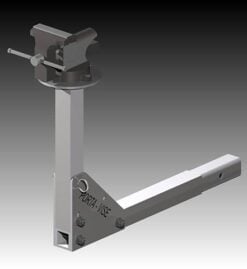 Easily attached to any 2 inch receiver hitch on any piece of equipment, including vehicles. Folds compactly so as not to take up valuable room in crowded utility vans, RV’s, workshops, and pickups. Holds work pieces just as securely as a conventional Vise. Lightweight, durable, and completely portable.